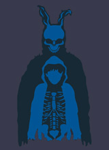 The Donnie Darko tee on the left displays Frank the Rabbit watching over Donnie Darko on the front. The creative design includes a silhouette image of Frank the Rabbit's head watching over Donnie in his skeleton costume. Pair it with a Donnie Darko movie poster to win over the fan in your life. This tee is available in over ten different colors. Not only is it perfect for fans of the movie, it's also great for those individuals who claim that they receive advice from a 6-foot-tall bunny named Frank.