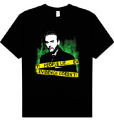 Solve the crime in this cool Gil Grissom CSI Las Vegas t-shirt that features the Grissom quote, "People lie, evidence doesn't." The front of this dark CSI t-shirt displays a silhouette image of William Petersen's character, who will always be a fan favorite. This CSI clothing item is perfect for fans of the television show who are looking for a Gil Grissom merchandise item.