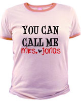 In addition to the You Can Call Me Mrs. Jonas tee above, browse the Jonas Brothers Clothing Gallery for more apparel like men's and women's clothes, kids shirts or hoodies.