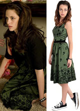 Outfit yourself in Bella's birthday dress when you're not dressing more casual in your Edward or Jacob t-shirt. Attract the attention of Forks vampire Edward Cullen (Robert Pattinson) and the La Push werewolf Jacob Black (Taylor Lautner). Jacob is part of the Quileute tribe, which has a treaty with the Cullen family that states that the Cullens are not allowed to bite any humans. Jacob provides a shoulder for Bella (Kristen Stewart) to lean on after Edward leaves. Purchase the dress with New Moon t-shirts that celebrate Bella's protectors, Edward and Jacob. Buy it with the Twilight board game.
