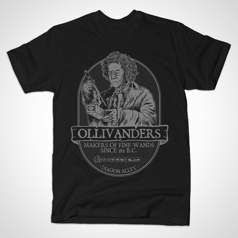 In addition to the Ollivanders tee above, browse the Harry Potter Clothing Gallery for more apparel like men's and women's clothes, kids shirts or hoodies.