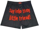 These hilarious Scarface boxers shorts are a great ode to the movie and a perfect way to express your manhood. The front of the boxers read "Say hello to my little friend!" and the back reads 'SCARFACE'. Grab a pair today while they're still available.