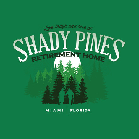 "Shady Pines, Ma." This was the friendly reminder from Dorothy (Bea Arthur) to Sophia (Estelle Getty) that she can still go back to "the home" if she steps out of line. The Shady Pines Retirement Home was far from a dream according to Sophia. In fact, it was hell. This Shady Pines t-shirt features the comedic side of Shady Pines, including "We make your elderlies work for their food," and "Register now for our famous shoemaking workshops!"