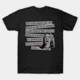 The front of this tee features the beginning of the movie's opening monologue accompanied by a silhouette image of Sally Hardesty's terror-filled face. The words "The", "tragedy", "befell", and "Sally Hardesty" are printed in red to emphasize the killer's favorite piece of meat. This Texas Chainsaw Massacre tee is an appealing tribute to the horrifying tone of the movie that is set in the very beginning by the opening monologue.