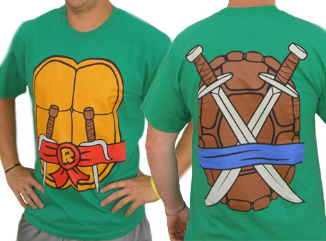 Description: If you recall, when the evil Shredder attacks, these turtle boys don't cut him no slack. If you dream about foiling villains' plans, then a costume TMNT tee is for you. This Teenage Mutant Ninja Turtle costume shirt is complete with weapons and a shell on the back. This design is available in Leonardo (blue), Donatello (purple), Raphael (red) and Michaelangelo (orange) for you to select from. While you're here, check out the Teenage Mutant Ninja Turtles hats and movie action figures available below, all based on the comic books. Link to: TMNT Character Costume