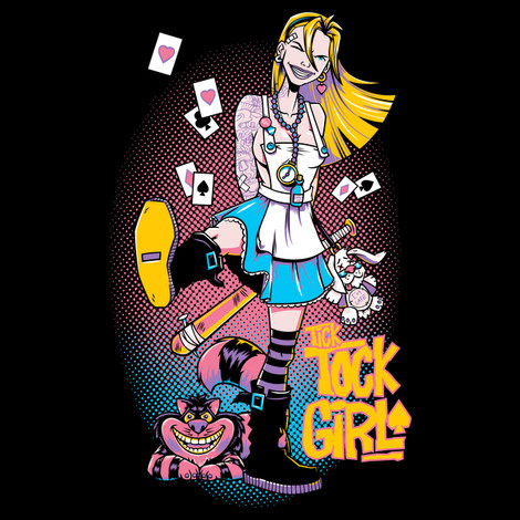 Description: This Tick Tock Girl design was inspired by Tank Girl and features Alice as part of that world. Her stare looks as if she has caught a glimpse of the Mad Hatter's hat or the Cheshire Cat's wide eyes and creepy grin. Recall her story, including the teapots, cups with saucers, memorable quotes and the tree where her adventure begins. Wear this tee to show off the unique illustration of the main character. Catch one of these Alice in Wonderland t-shirts before they get away. "What an idea... A crazy, mad and wonderful idea." Link to: Tick Tock Girl Alice in Wonderland Alice