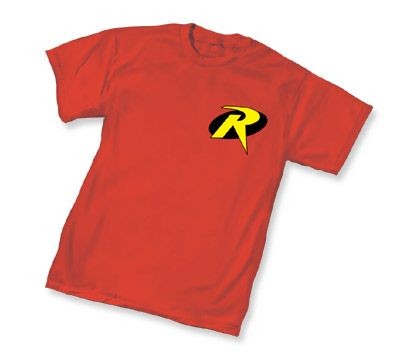 Description: The front of this red tee displays the 'R' symbol from Robin's costume. The Boy Wonder was first introduced in 1940, roughly a year after Batman debuted. The purpose of the character was to draw in a younger audience. It worked and the two became known as the Dynamic Duo, taking on villains like the Joker, whose hauntingly happy white face hid the complexities of a formidable foe. Wear this Robin Symbol design to represent one half of the Caped Crusaders. Pair it with a Batman Dark Knight shirt or battle your friend in his Joker mask. Link to: Robin Symbol