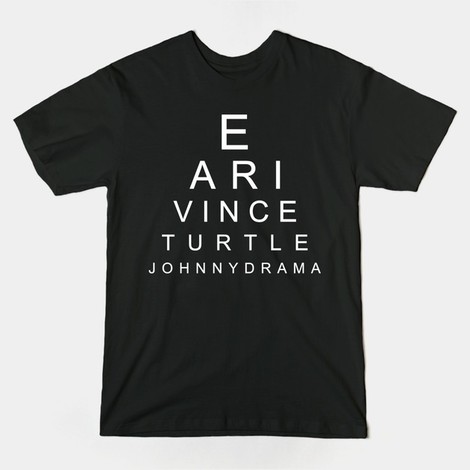 Description: This eye chart style Entourage tee displays the names of each main character. Wear it as you stroll down your own version of Queens Boulevard, the title of Vincent Chase's movie that was directed by Billy Walsh. The indie director and his cast first take the movie to Sundance in the episode "The Sundance Kids". Pair this with an attractive Queens Boulevard t-shirt that features the Vincent Chase Entourage quote, "I am Queens Boulevard." Link to: Entourage Eye Chart Names